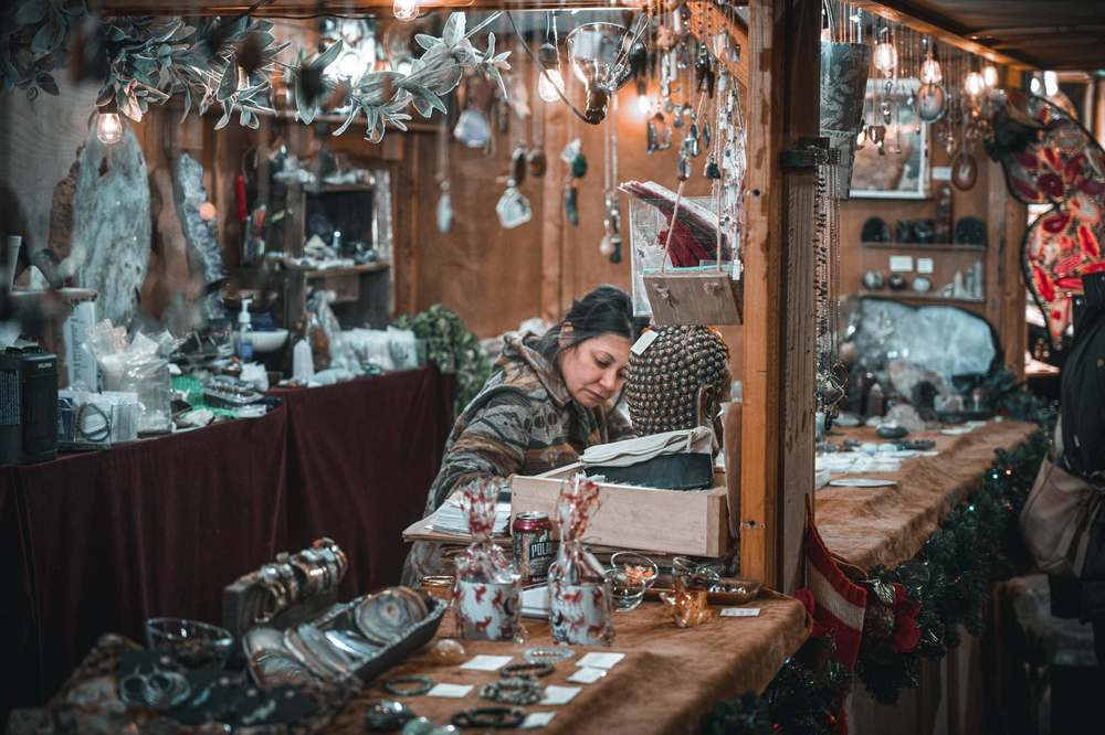 It’s a busy Sunday evening at the ,Atlanta Christkindl Market, but Jessica Pantino is smiling as she pours steaming cups of glühwein for a long line of eager customers. Pantino’s job at the popular Buckhead Village District holiday market is temporary—lasting from the weekend before Thanksgiving to Christmas Eve—but it’s a nice break from the usual: The rest of the year, she’s a traveling pediatric emergency room nurse. This year she decided to pick up the Christkindl gig to stay closer to her family and get a change of pace. “I love being able to talk to people—everyone’s so friendly,” Pantino says. “It’s just festive!”