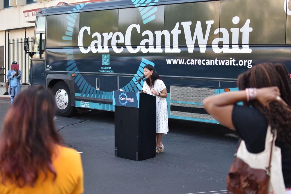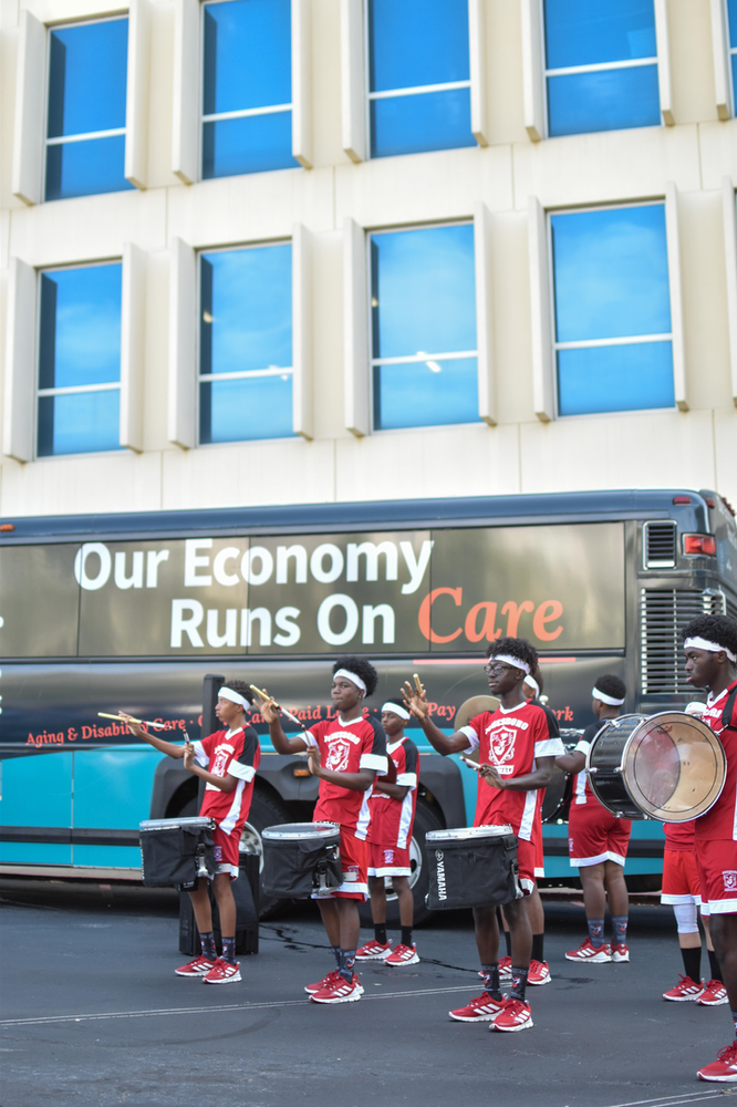 And yet caregiving is deeply undervalued in the U.S., the only wealthy country in the world with no federally mandated paid family or medical leave. As a profession, caregiving is also desperately underpaid. That was the message of the event where Lamar delivered her remarks: the final stop on a bus tour called Care Can’t Wait, which aimed to draw attention to the plight of care workers, and to build political pressure for things like higher wages, healthcare access, and unionization. The tour had begun a few days earlier in Chicago before wending its way through cities including Detroit and Philadelphia, and North Carolina’s Research Triangle area.