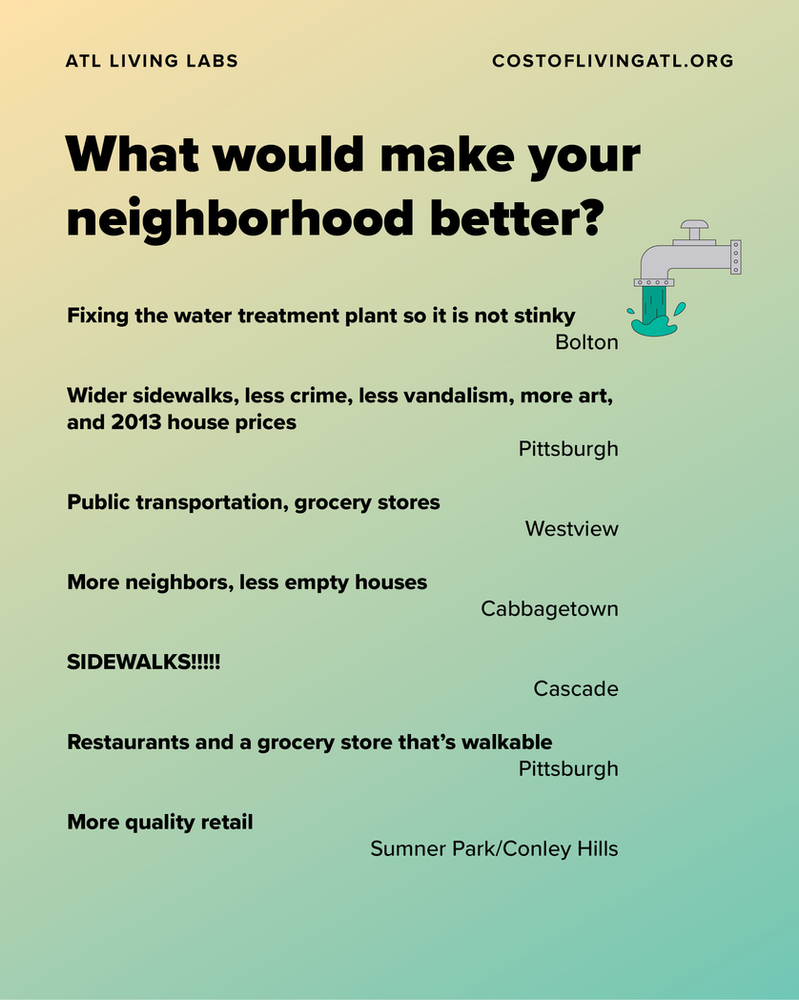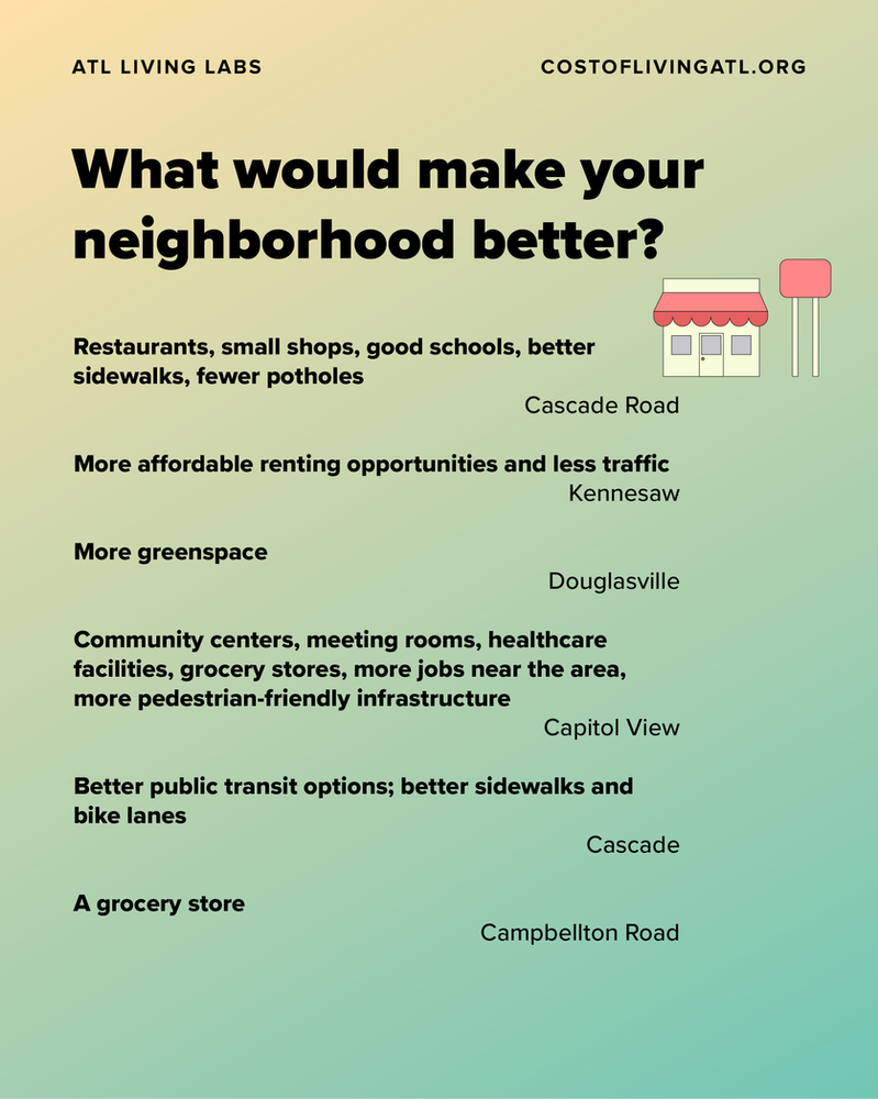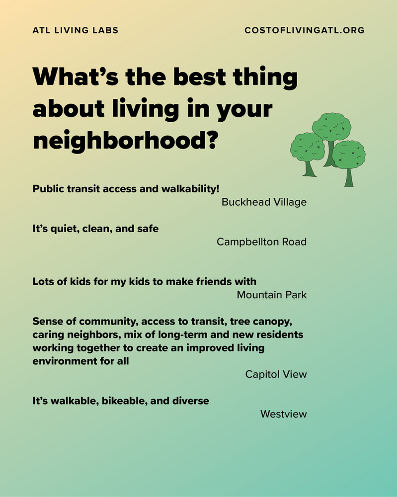 Our friends at Tallymade polled ATL Living Lab guests during events on Donald Lee Hollowell, Buford Highway, Campbellton Road, Jefferson Street, and Memorial Drive. Here’s what they had to say. •