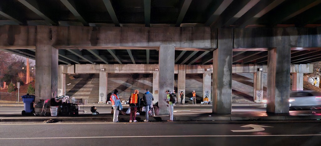 The PIT Count crews set out shortly after 8 p.m. on Jan. 27. What began as an awkward process — like occasionally asking people if they were unhoused and learning they weren’t, or having to wake someone up to ask questions — soon gained welcome attention as word of their mission (and of the Kroger gift cards) spread.
