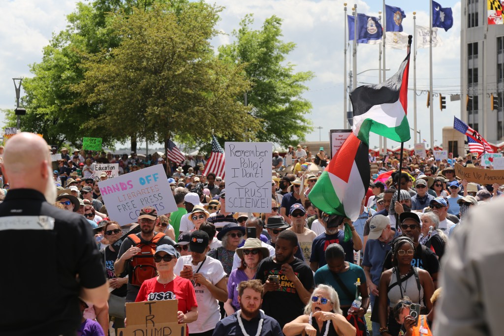 Well over 20,000 protestors, according to organizers’ estimates, represented a kaleidoscope of progressive political interests. Spearheaded nationally by Indivisible, the broad Atlanta coalition included LGBTQ+ activists, labor unions, pro-Palestine activists, Democrats, the DSA, 50501, MoveOn, and faith organizations — groups that might not always agree, but mobilized together to call for “hands off our democracy.”