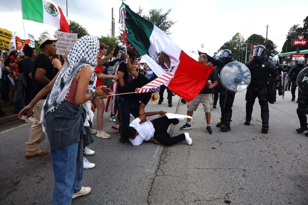 Officers sporting body armor and riot shields first deployed chemical irritants into the crowd after pushing them from a busy north Atlanta roadway onto the sidewalk. DeKalb County officials justified law enforcement’s actions — including at least eight arrests — in a statement that said protestors were “creating a dangerous situation” because they had “attempted to march towards the interstate ramp.”