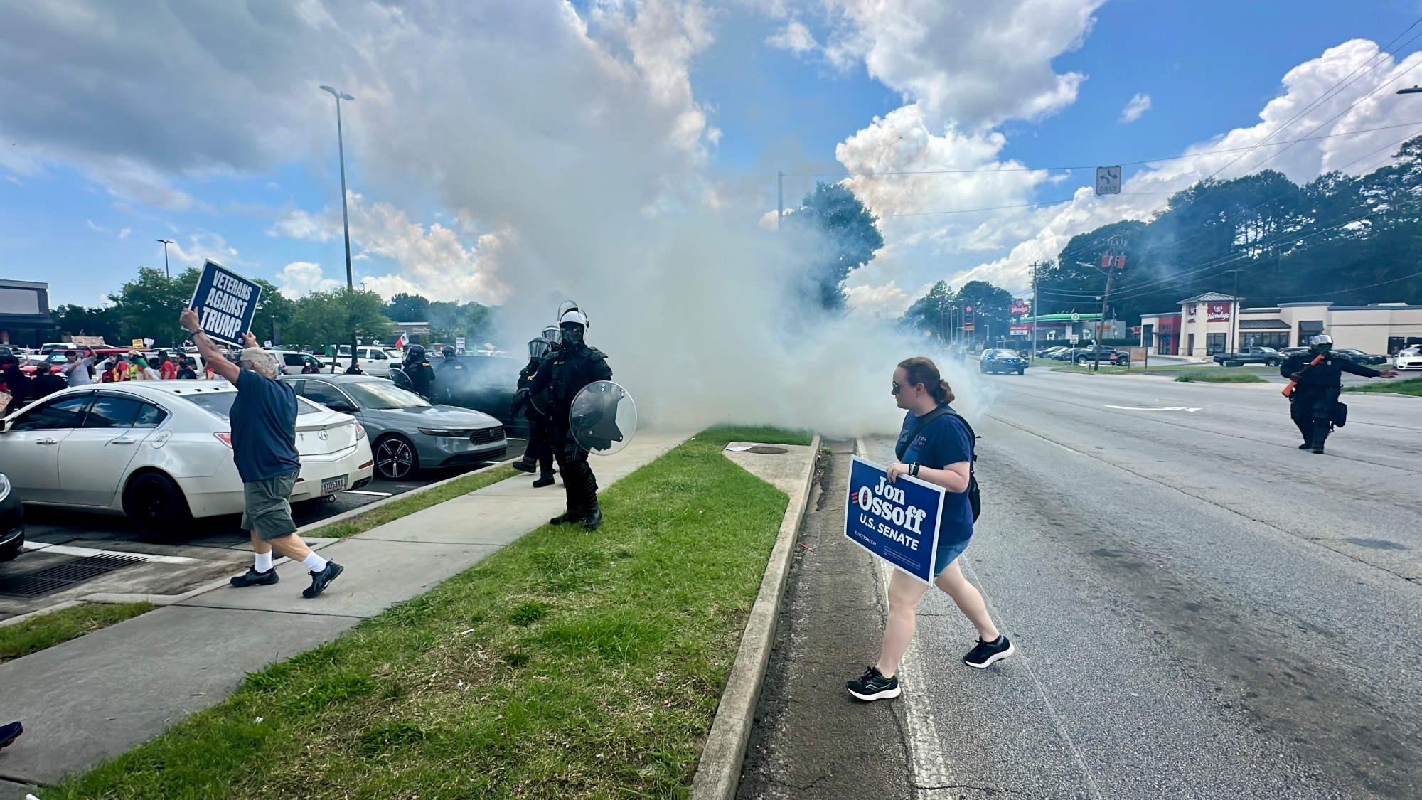 Officers sporting body armor and riot shields first deployed chemical irritants into the crowd after pushing them from a busy north Atlanta roadway onto the sidewalk. DeKalb County officials justified law enforcement’s actions — including at least eight arrests — in a statement that said protestors were “creating a dangerous situation” because they had “attempted to march towards the interstate ramp.”