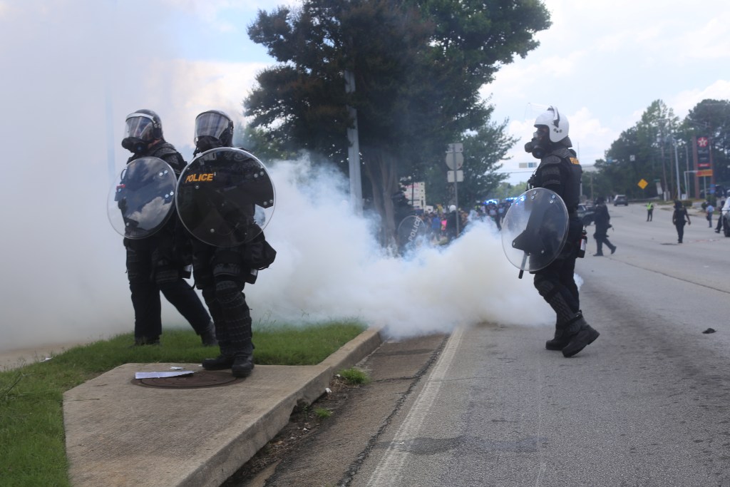 Atlanta Civic Circle reporters were just a few steps from Guevara when police in riot gear detained him while he was livestreaming the tail end of a protest where DeKalb County and Doraville police officers liberally deployed tear gas on the crowd of peaceful demonstrators on at least three separate occasions — first to chase them off the roadway, then to disperse them off the sidewalk.