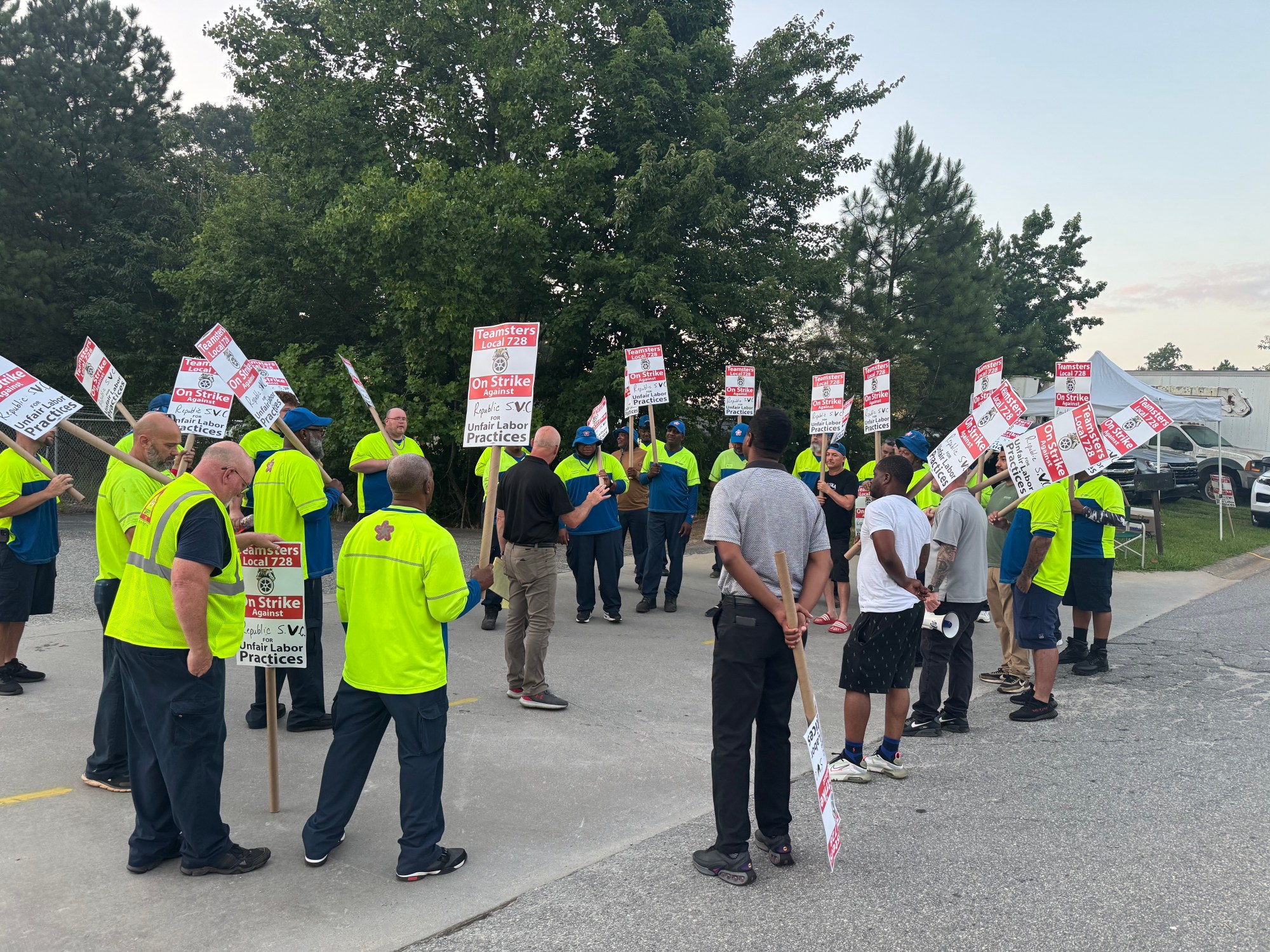 The 33 Teamsters Union members joined a growing number of unionized Republic Services workers on strike nationally after contract negotiations that started in March between the Teamsters and management hit an impasse. The workers are striking over unfair labor practices and are demanding pay increases, better health insurance, and safer scheduling and work practices.