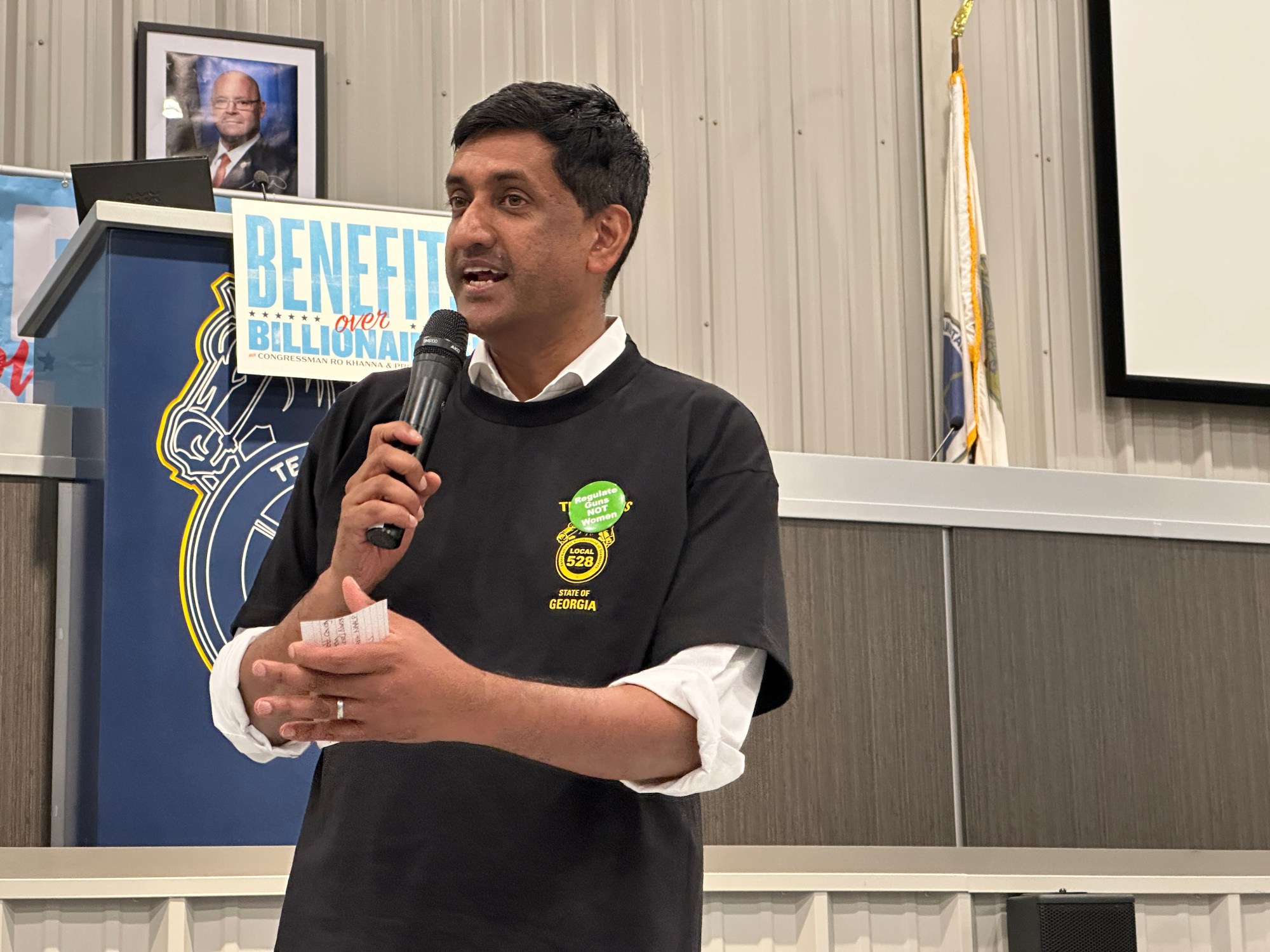 California Congressmember Ro Khanna (D-Fremont) drew an energetic crowd of nearly 200 progressive political hopefuls, activists, and labor organizers for the Atlanta stop on his “Benefits Over Billionaires” barnstorming tour on Monday.