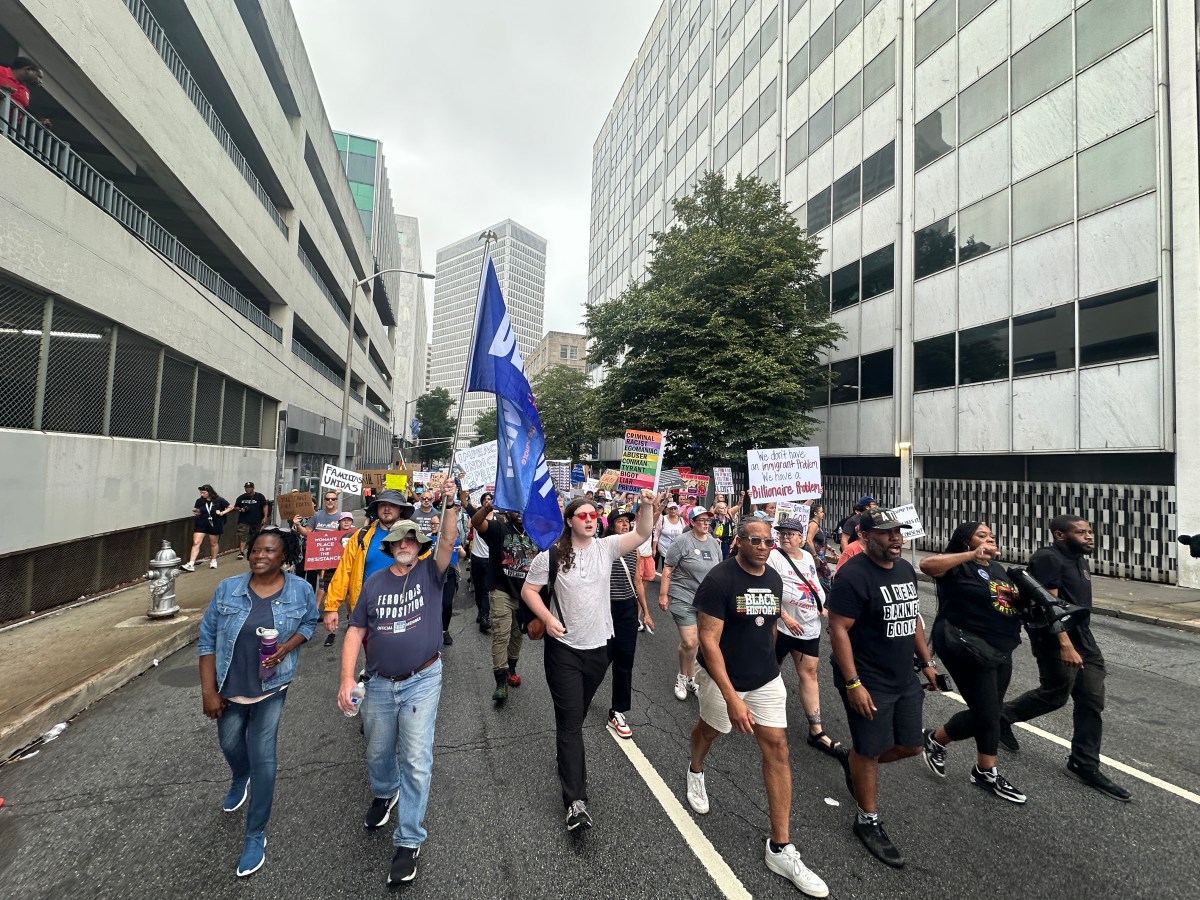 Posted inDemocracy Hundreds rally in downtown Atlanta against Trump and ICE by Alessandro Marazzi Sassoon August 4, 2025August 4, 2025 Protesters decried ICE’s ‘secret police’ tactics