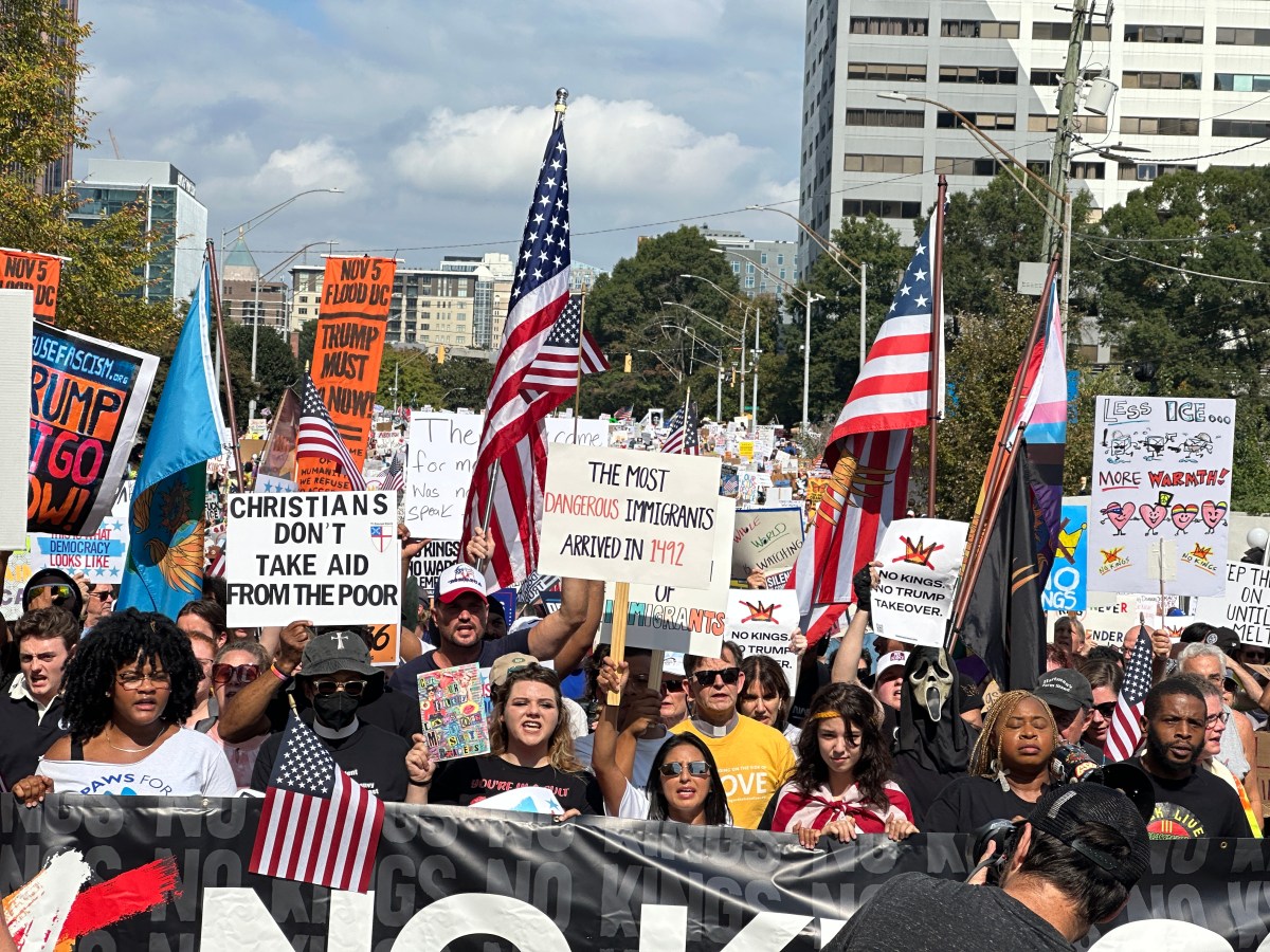 Posted inDemocracy Thousands march in Atlanta’s ‘No Kings’ rally, despite permit snafu by Alessandro Marazzi Sassoon October 20, 2025October 20, 2025 Rallygoers exhorted local leaders to stand up for basic rights